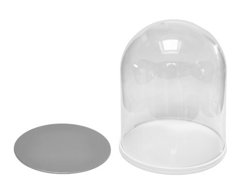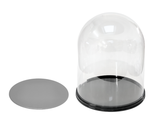 In 3 sizes. In 2 colours, black or white. On the plastic base, you can put a coloured cardboard, very practical. A variety of colours is available for this thick cardboard. This cardboard is an option and is not automatically included when you order the base model. Note that cardboards round, especially designed for the Domes, will not be supplied separately, without ordering domes.